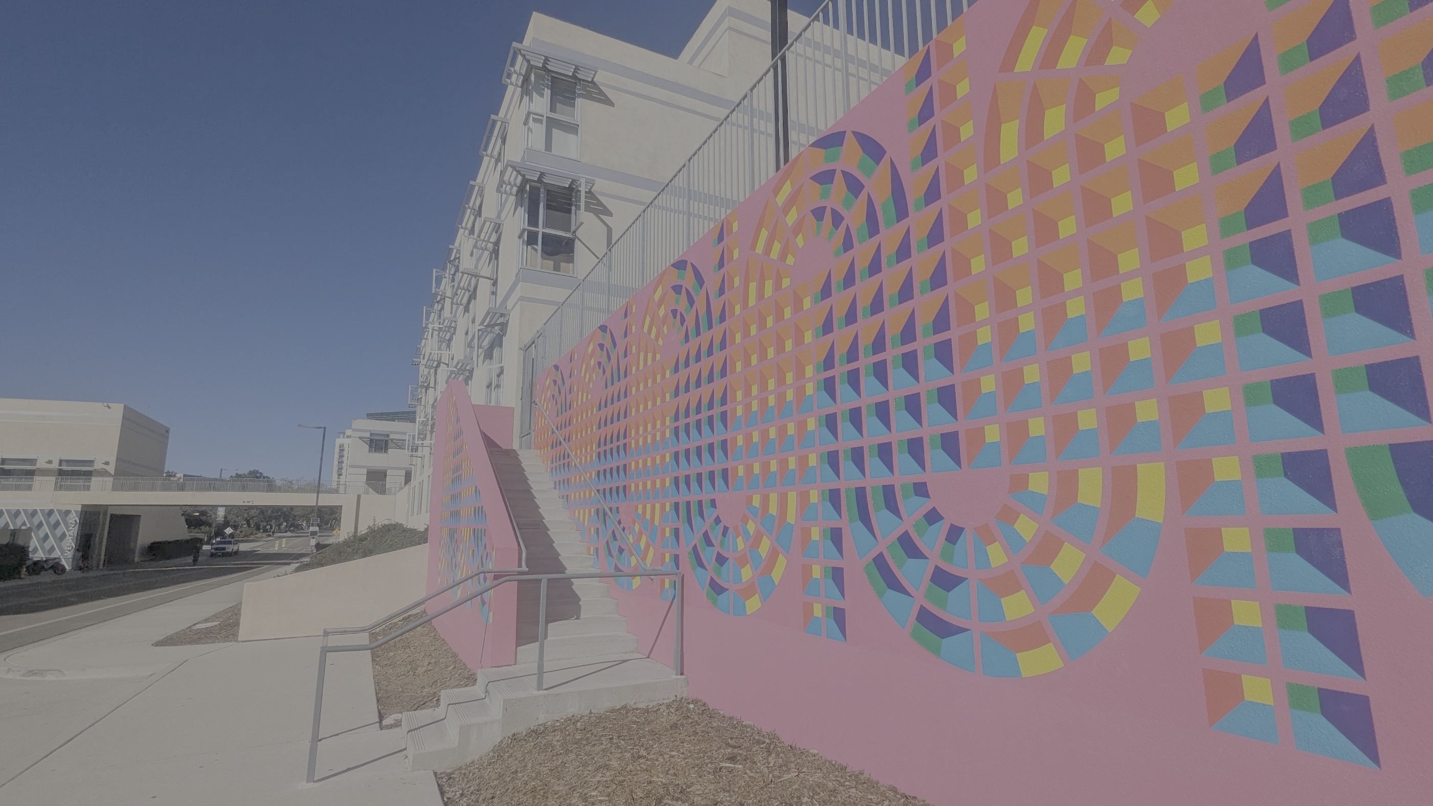 Commissioned as part of a partnership between the non-profit Murals of La Jolla project and UC San Diego, Jim Isermann's monumental Never Turn Your Back On The Ocean is an explosion of color in the heart of one of the campus' most diverse communities: International House.