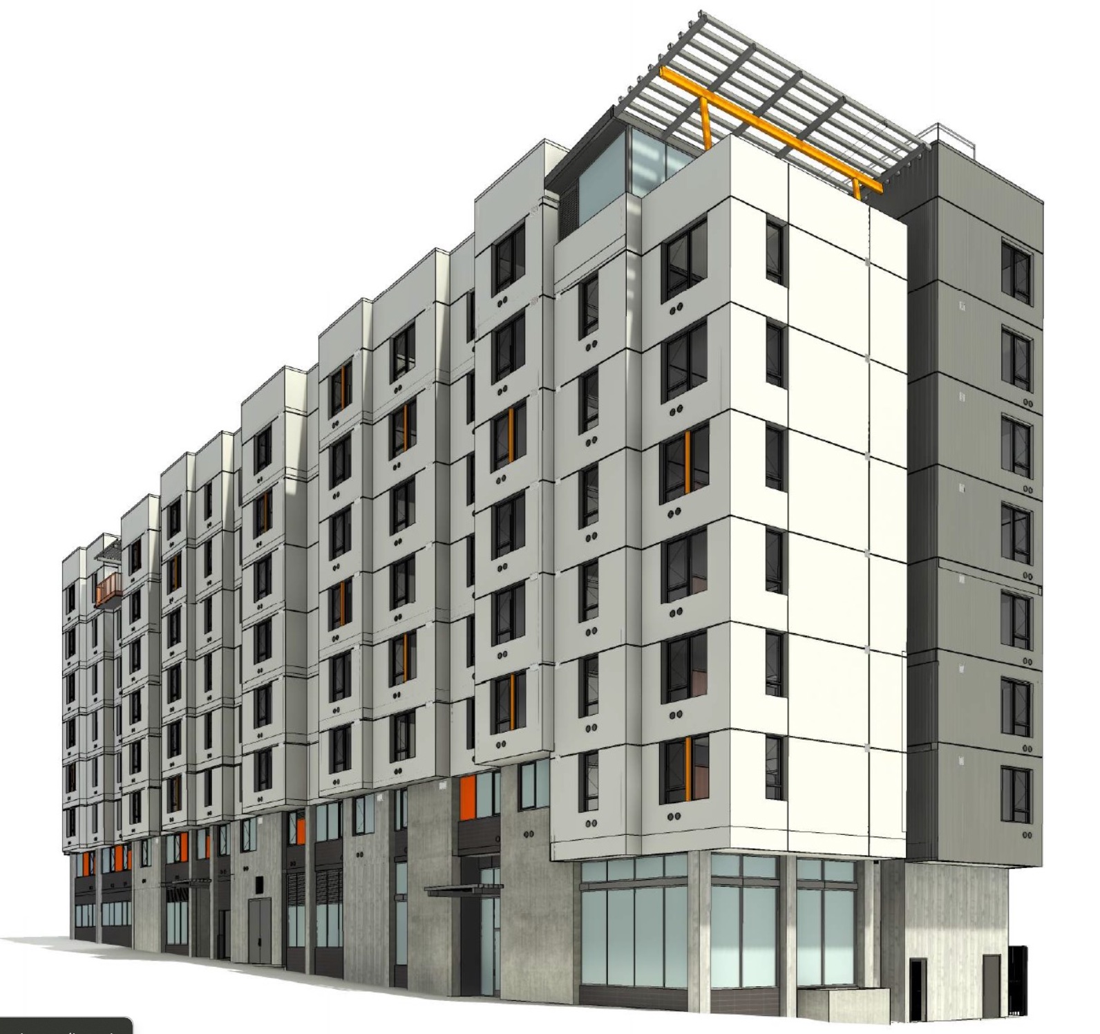 Supportive services anchor the ground floor, which will include a lobby and reception area, offices, community amenity spaces, utilities, and a commercial kitchen. Space will also be dedicated to outreach programs, that will operate directly within the building to provide daily services and resident support. No commercial retail uses are planned, allowing the entire project to remain fully focused on housing and care.