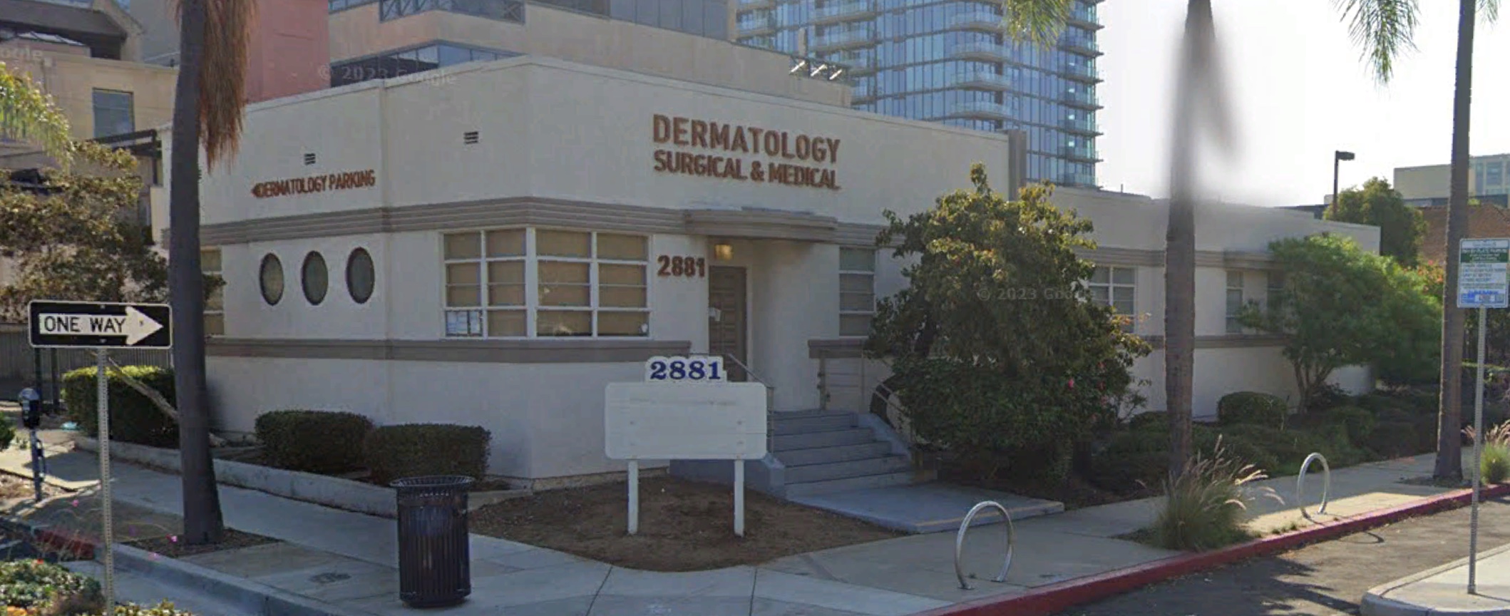 The site has an interesting history. It was originally taken up by an L-shaped medical office building completed in 1934 by well-known “Streamline Moderne” architect Charles Salyers, shown below. In 2021, the building was marked as historic, but both the buyer and seller of the site filed for a joint appeal to the San Diego City Council, who ruled in their favor that the building was not historic. Apparently, "Almost half the building [was] known to be a new addition, and not built by a master architect.”