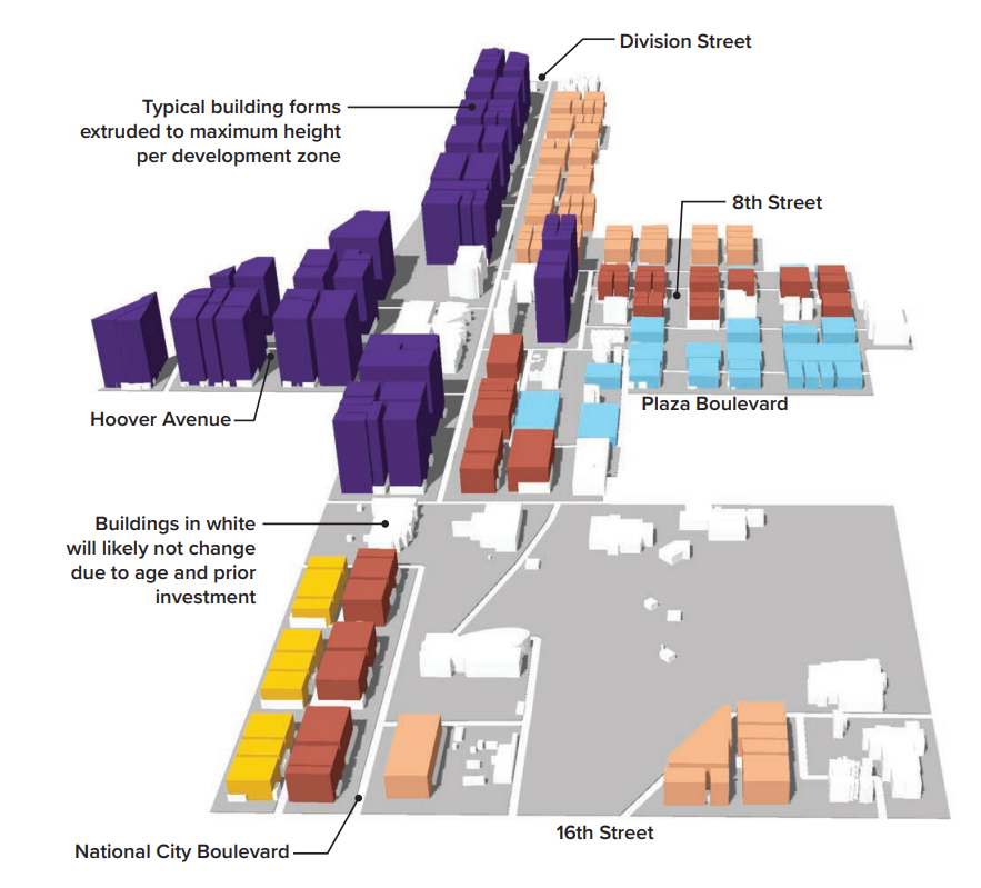 Being the first highrise planned in National City since the late 80s. It can take advantage of their "new" Downtown Specific Plan, passed in 2017, allowing for buildings as tall as 250ft on this site, and an FAR of 6.0. Likely using affordable housing density bonuses Azuriik is maximizing the zoning allowed to it. Likely being over 230 ft tall.