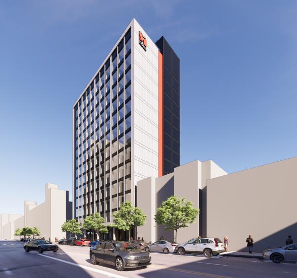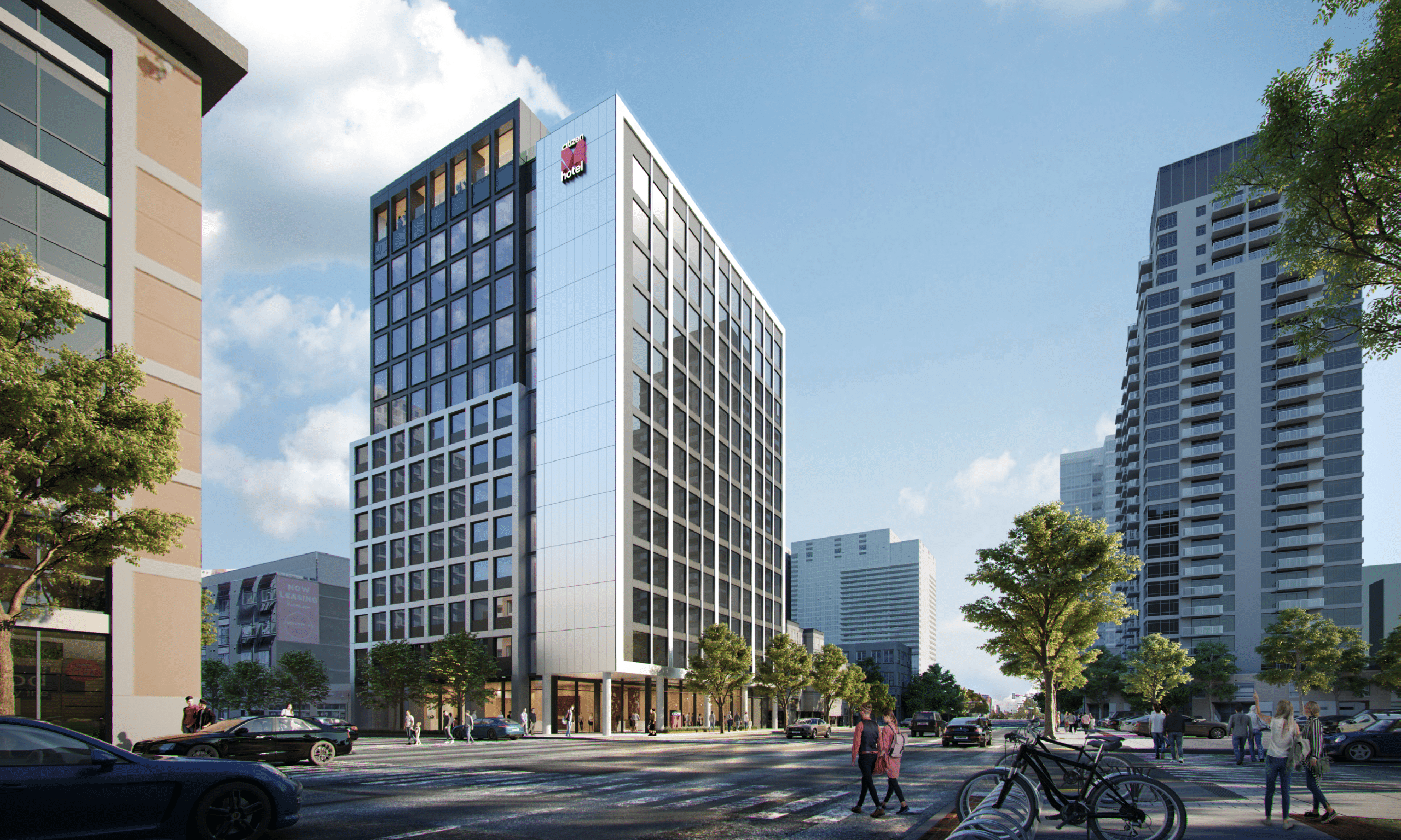 An empty lot on Market Street in the Gaslamp Quarter is planned to become a new hotel. Citizen Hotel San Diego will be like their locations across the country, the essentials for a luxury experience. Citizen M Hotels skip large rooms, or room service while giving guests the quality necessities they want. A good nights rest and a good place to relax. They do this with small rooms made for 2, comfortable beds, custom lighting, easy to use tech features like smart ac and tv controlled by a tablet. The idea of this hotel is somewhere where you go to sleep and wake up to enjoy the city. To get a quick breakfast and spend the rest of the day at the beach, or doing business, or visiting friends and family. The building will also have a rooftop pool and bar, a fitness room, a ground floor bar, and small dining room for breakfast.