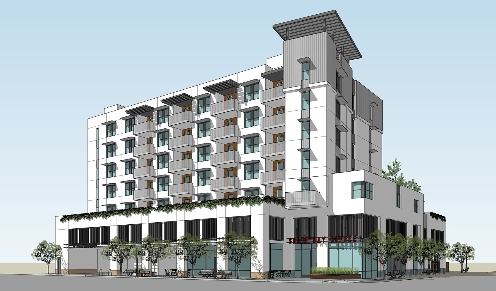 The site, a former used-car lot, is now being redeveloped as an infill project by the Retirement Housing Foundation. It is planned to have 55 affordable one-bedroom studio apartments for seniors in addition to one caretaker unit. Additionally, the site will include a 2,083-square-foot Program of All-Inclusive Care for the Elderly (PACE) clinic operated by San Ysidro Health, as well as a parking garage.
