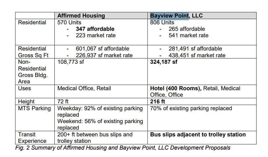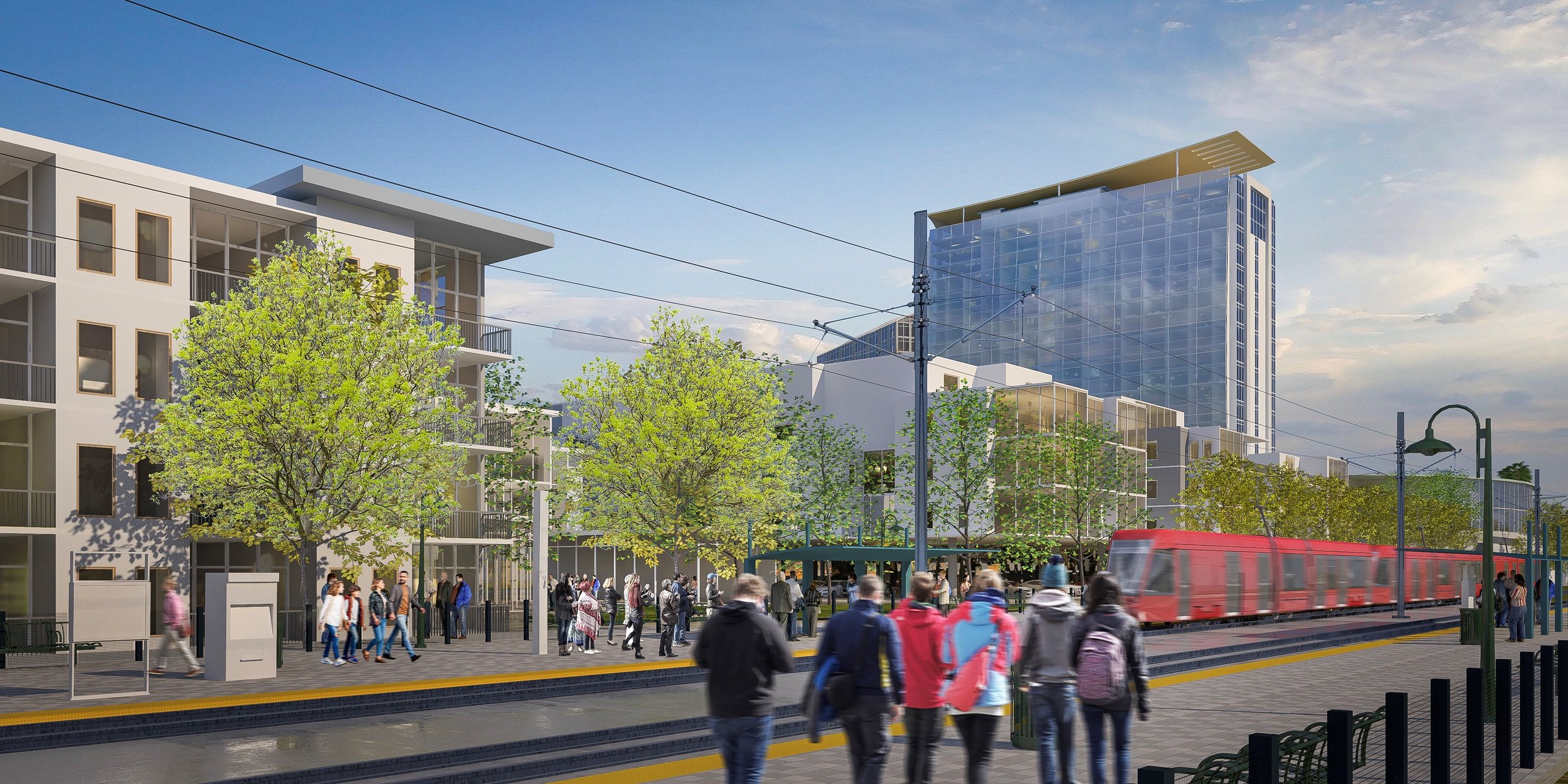 A large Transit Oriented Development (TOD) project is in the works at E Street Station in Chula Vista. MTS and Chula Vista have 2 large neighboring parcels that under the Surplus Land Act had to be developed. So the 2 parties teamed up to make a larger project receiving several proposals, which Bayview Point LLC by Mountain West Real Estate won with a compelling and ambitious plan.