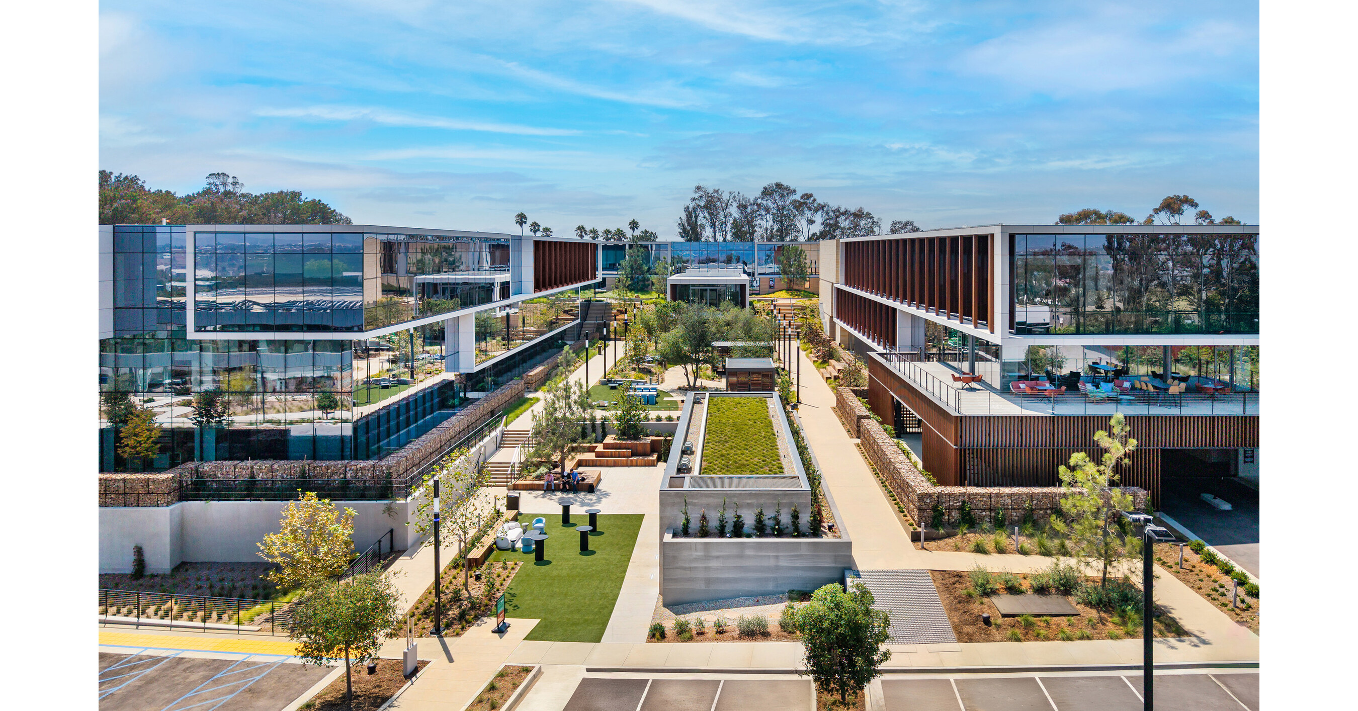 One Alexandria Square is a new office, lab, events and meeting center located off North Torrey Pines. Located across said road from the renowned Torrey Pines Golf Course, the complex includes 80,000 square feet of lab and office space, of which 40% is dedicated for labs and 60% is dedicated for office space. The project is a complete overhaul and replacement of an existing office complex.