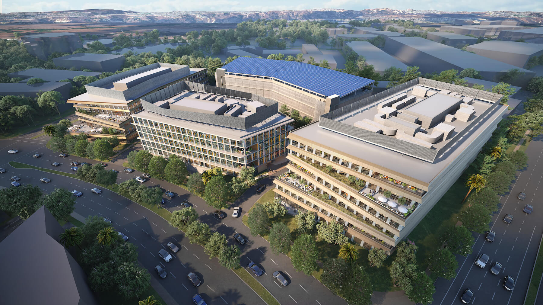 Building A consists of 309,000 square feet of research space, a theater room, and a vivarium. Building B has 202,000 square feet of research space, a conference center for 125 people, a lounge and a vivarium. Building C, which is yet to begin vertical as of writing, will feature an additional 279,000 square feet of research space, a conference center, lounge, and vivarium. The amenity center will include a fitness center, a chef driven food and beverage program, an event room, a theater room and an outdoor lounge. The campus, designed by Gensler, is LEED Gold certified, and will include rooftop solar and EV Charging stations. Despite buildings A, B, and the market hall being open, it is unclear whether any life science tenants have yet to sign a lease at this massive development.