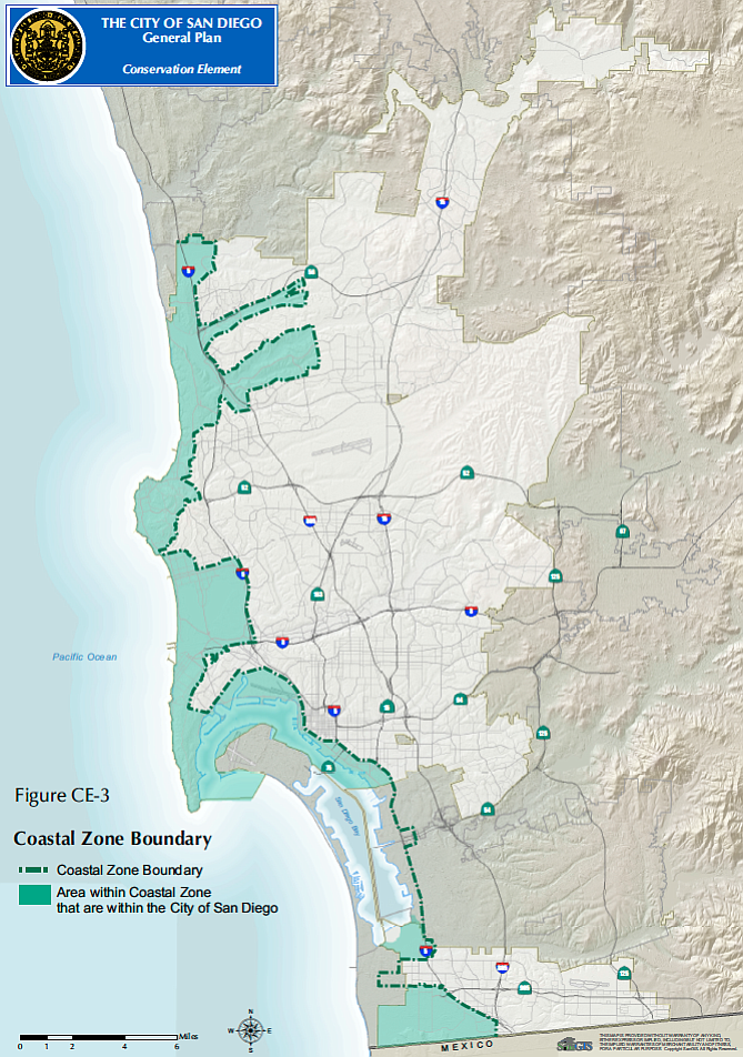 In some cases, however, this line and limit can seem arbitrary at best and discriminatory at worst. For the most part, the dividing line for the coastal height limit in San Diego County is I-5, preventing change and new buildings in many wealthy and majority-white communities, while Black and Hispanic neighborhoods were open for unrestricted development. In Pacific Beach, the Coastal Zone stretches 2.5 miles from the waterfront; in Barrio Logan, it reaches less than a mile inland and has been augmented to allow taller projects.