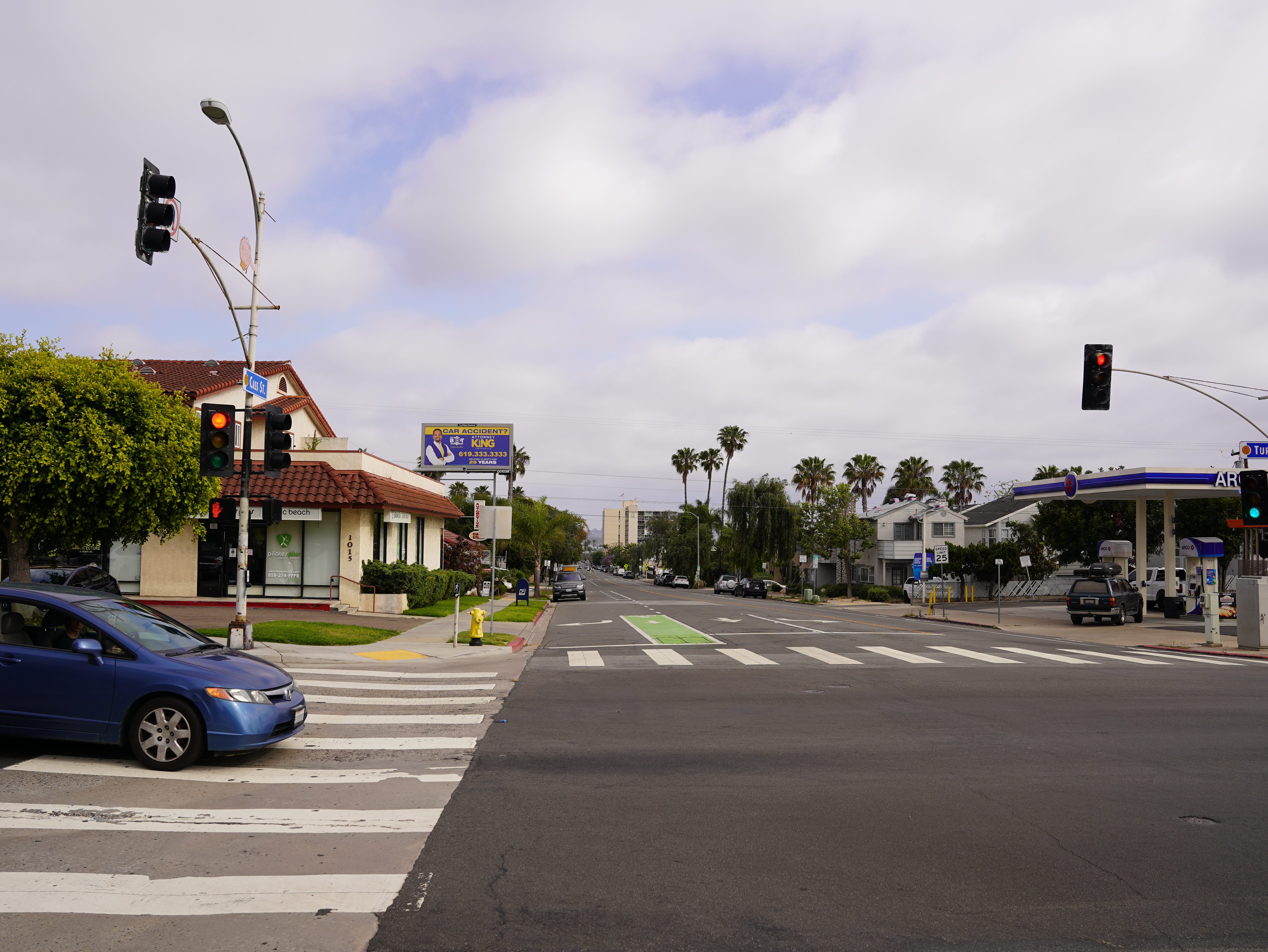 Turquoise St & Cass St, SE corner, looking out at the project site / BuildSD photo