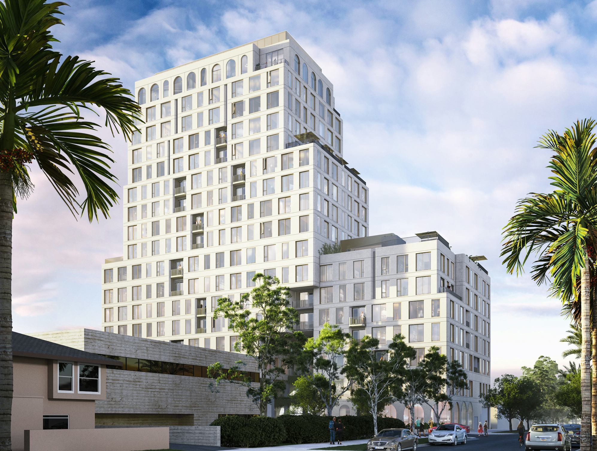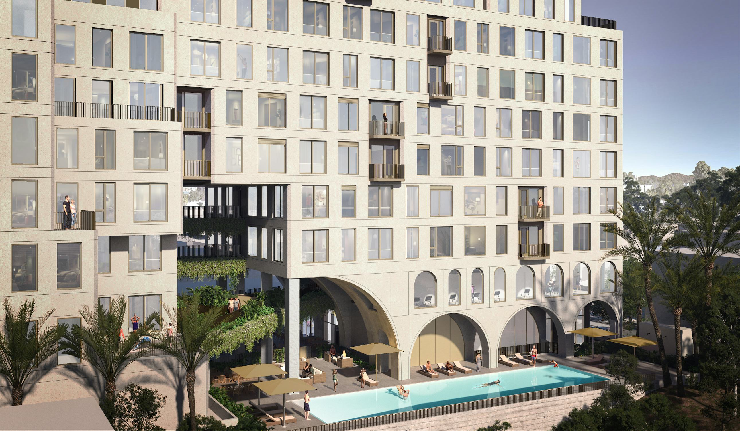 The project will have multiple pools, as well as “a spa, gym, community kitchen, [and] dining area.” It will also contain a below-grade parking garage and 5,631 square feet of ground floor commercial space.