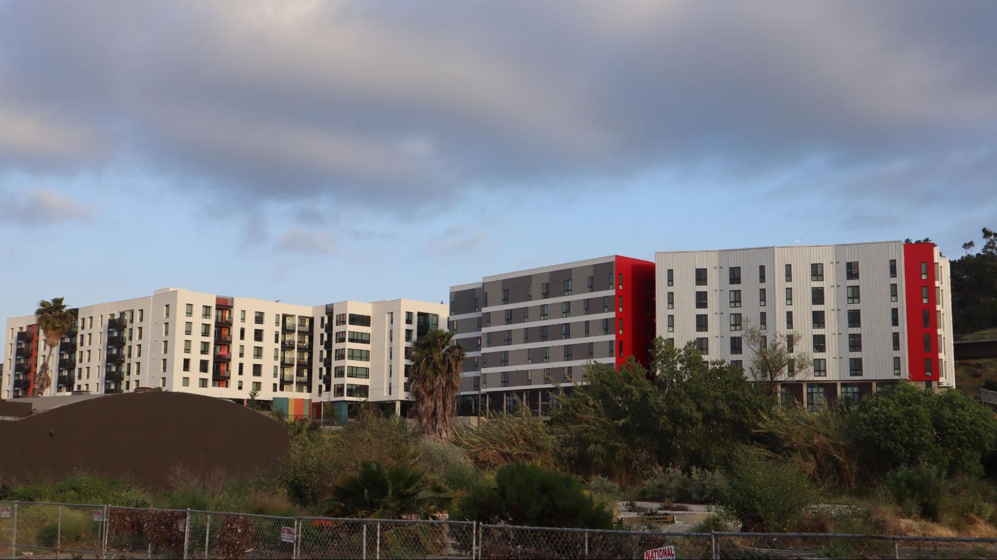 Shoreline completed in April 2024, is Affirmed Housing's 100% affordable housing project also located at Grantville Station. Home to a future 400 residents making 30% to 60% of the area median income, these units also range from studios to 4-bedrooms. The property has laundry rooms on every floor, bike storage, a community room, and a shared kitchen. The building also has “a lush, 26-foot-wide paseo that leads to the main entrance and several paths through and around the building”, according to Affirmed. This open space allows the project to more easily access the planned park behind it and the Grantville station.