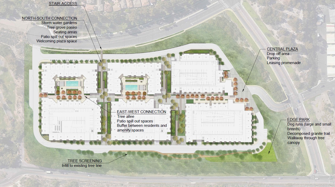 The name Stonecrest is lifted from Stonecrest Plaza, the lifestyle center the Fry’s was a part of. It remains to be seen if this name will stick as development continues.
