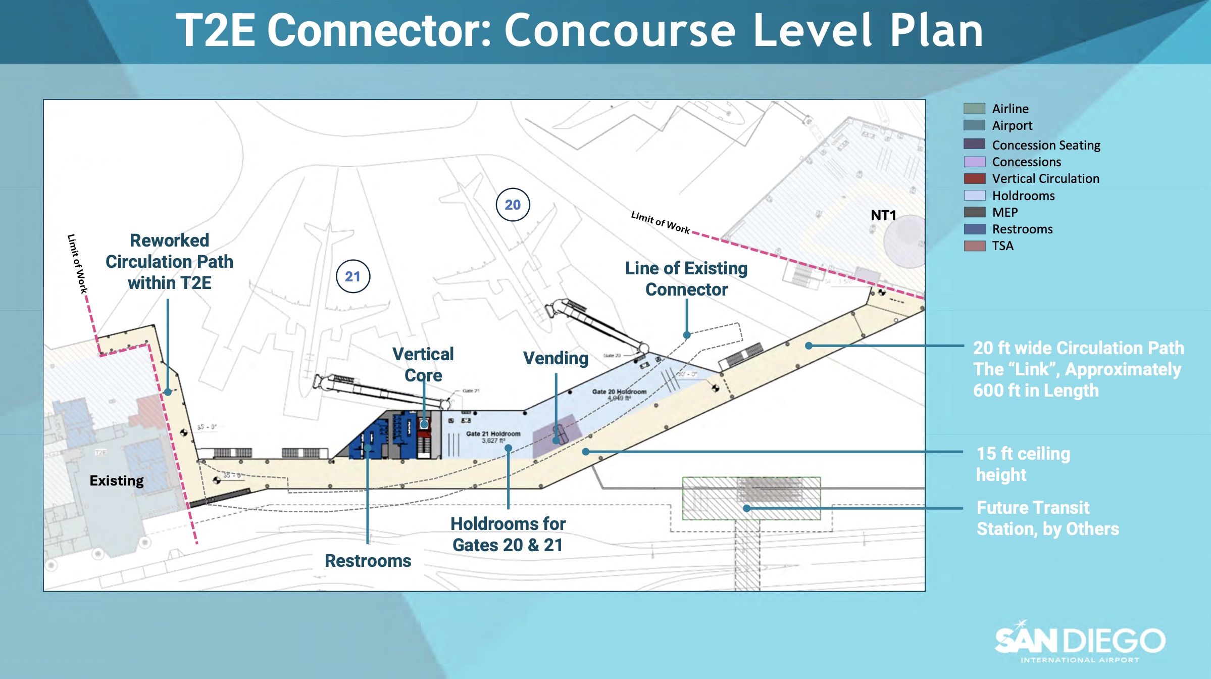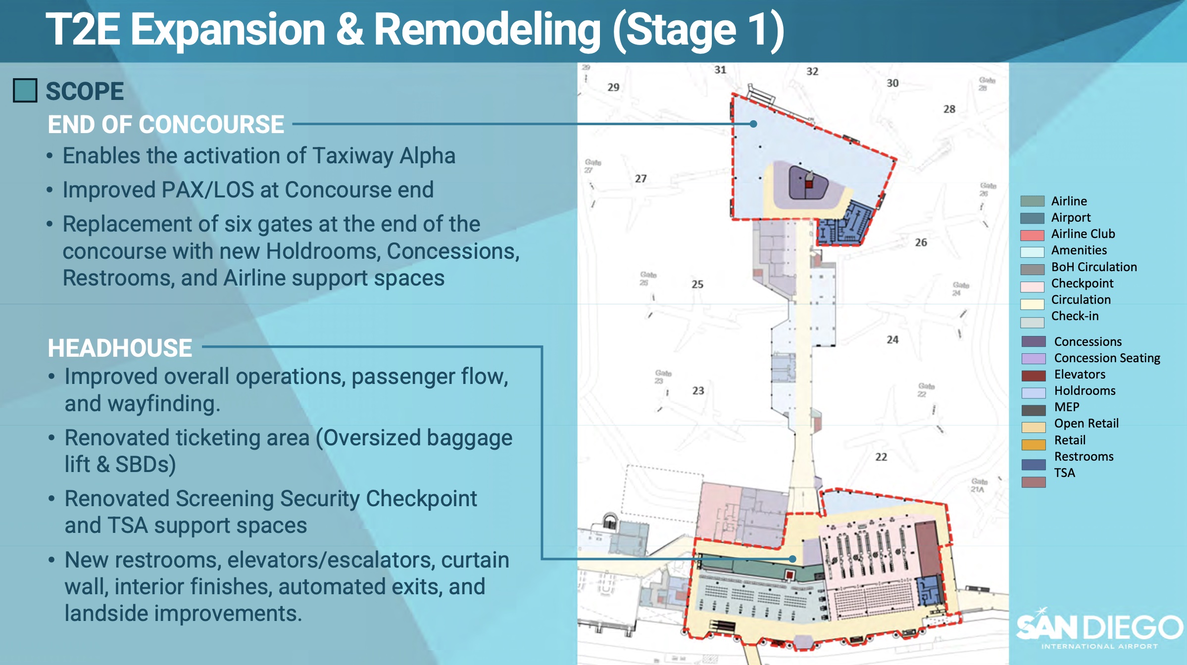 Since original completion in 1979, San Diego International Airport's Terminal 2 East (ironically known originally as the West Terminal) has undergone a patchwork of smaller renovations and expansions to keep the terminal in line with modern travel expectations. With the demolition of SAN's original Terminal 1 now complete, however, Terminal 2 East now represents the oldest surviving part of the airport, and it shows. Luckily, plans are in motion for it's newest round of improvements.